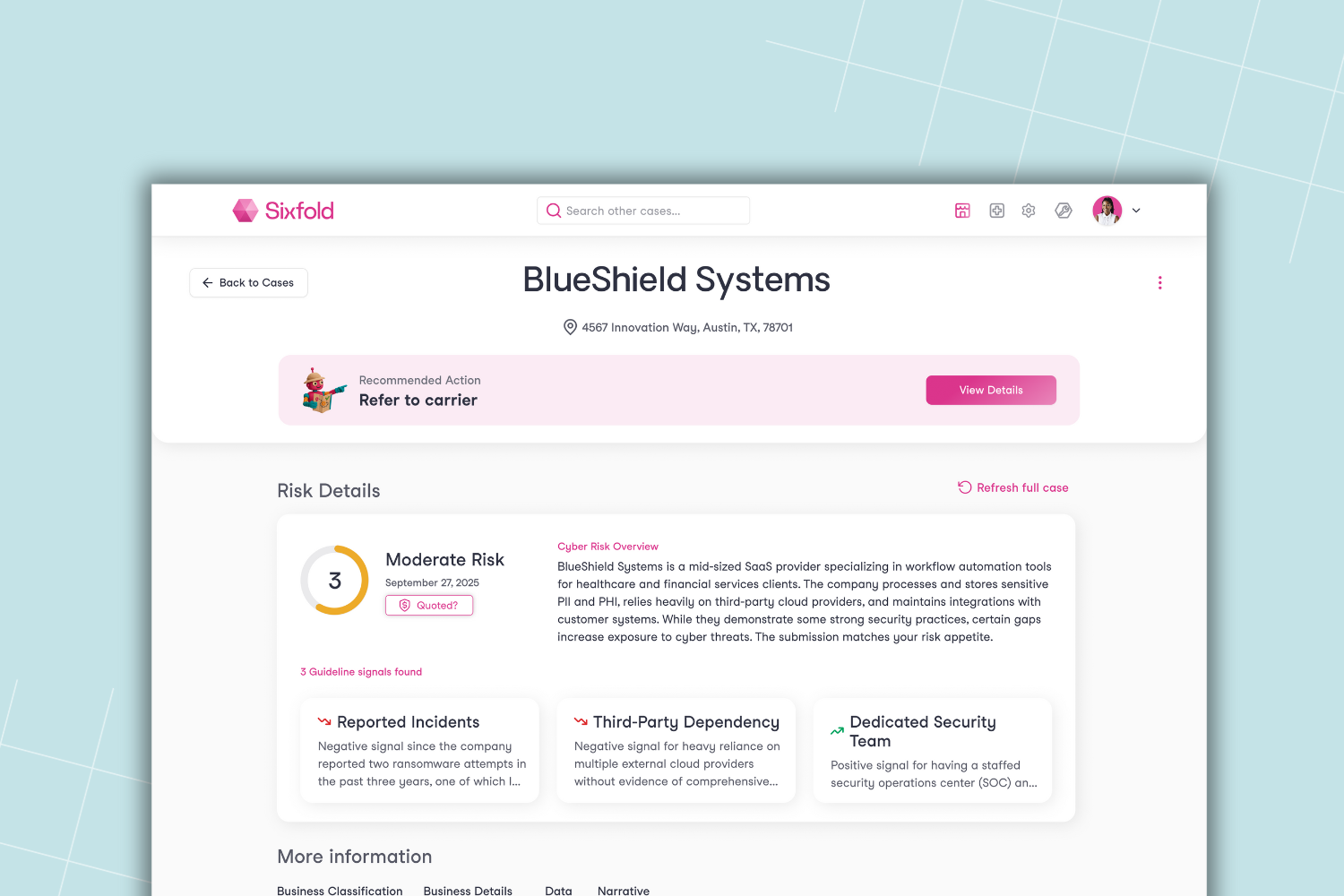 Sixfold is shifting from insight to action. Our AI has helped underwriters surface risks, highlight insights, and guide decisions, but now we’re taking the next step with a suite of agents designed to clear bottlenecks in the underwriting process. First up: Referral Agent.